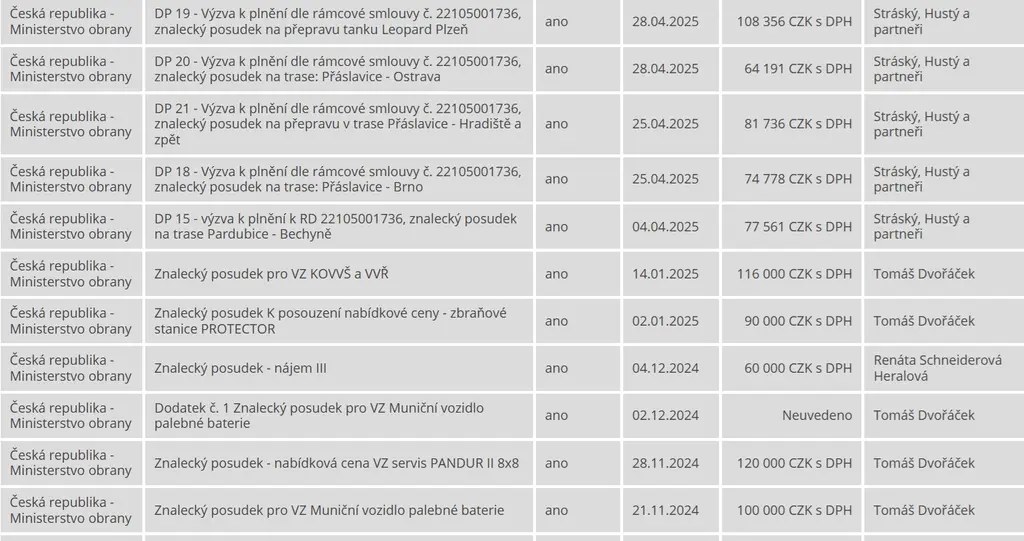 Drtivá většina znaleckých posudků z poslední doby stála vyšší desítky tisíc korun. A nerozhodovalo, jestli šlo o nákup vojenské techniky za miliardy, posudků ceny prací údržby a úklidu, nebo přepravu vojenské techniky v rámci České republiky.