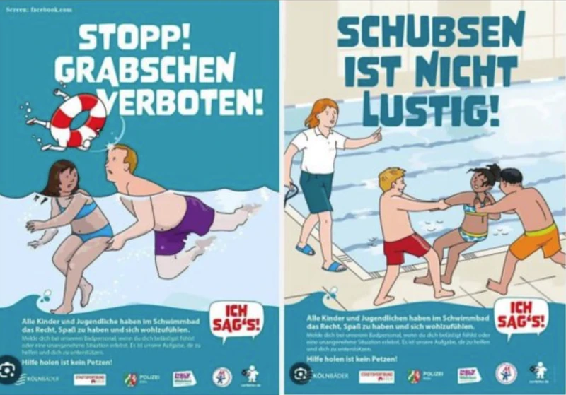 Veřejná osvětová kampaň v Německu vyvolala kontroverzi kvůli zobrazování obětí a pachatelů obtěžování na veřejných koupalištích.