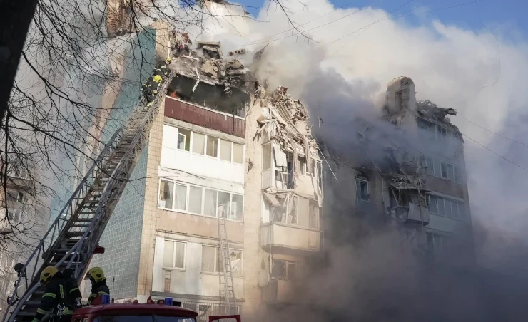 (Poznámka Nové Republiky: autor tu má za fakt informace ukrajijnských propagandistů, pověstných stálým překrucováním skutečnosti a vymýšlením různých protiruských narativů. Ve skutečnosti mohl mít zásah do civilního domu jiné příčiny. V minulosti se mnohokrát stalo a bylo zdokumentováno i na zveřejněných videích, že škody způsobila ukrajinská protiletadlová střela, k terá v důsledku rušení, vnitřní chyby či chyby v navádění netrefila svůj cíl. Ukrajinci navíc rozmisťují svou bojovou techniku a především protiletadlové baterie děl i raket doprostřed civilní zástavby. Proto doporučujeme brát podobné informace s velkou rezervou. -vd-)