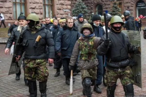 Klidné protesty proti korupci a pro vstup do EU vystřídaly na Majdanu ozbrojené oddíly Pravého sektoru.