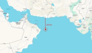 Proč je klíčový právě ten dolet ~300 km? Protože ti, kteří si zde přečtou můj rozbor íránských protilodních schopností, si jistě vzpomenou, že íránské protilodní balistické střely dosahují prakticky 300 km, což je přesná vzdálenost, na kterou se americké letadlové lodě odváží přiblížit k íránským břehům, aby se udržely jen o vlásek mimo dosah, a přitom předstíraly „houževnatost“ a projevily nějaké falešné „odhodlání“. Všimněte si, že přesné měření je ve skutečnosti 331 km, což znamená, že se opatrně drží těsně mimo dosah íránských raket – a ve skutečnosti je to více než to, vzhledem k tomu, že íránské odpalovací zařízení by se nacházelo desítky mil ve vnitrozemí, nikoli přímo na pobřeží, takže skutečný celkový dolet íránských raket je pravděpodobně 375–400 km.